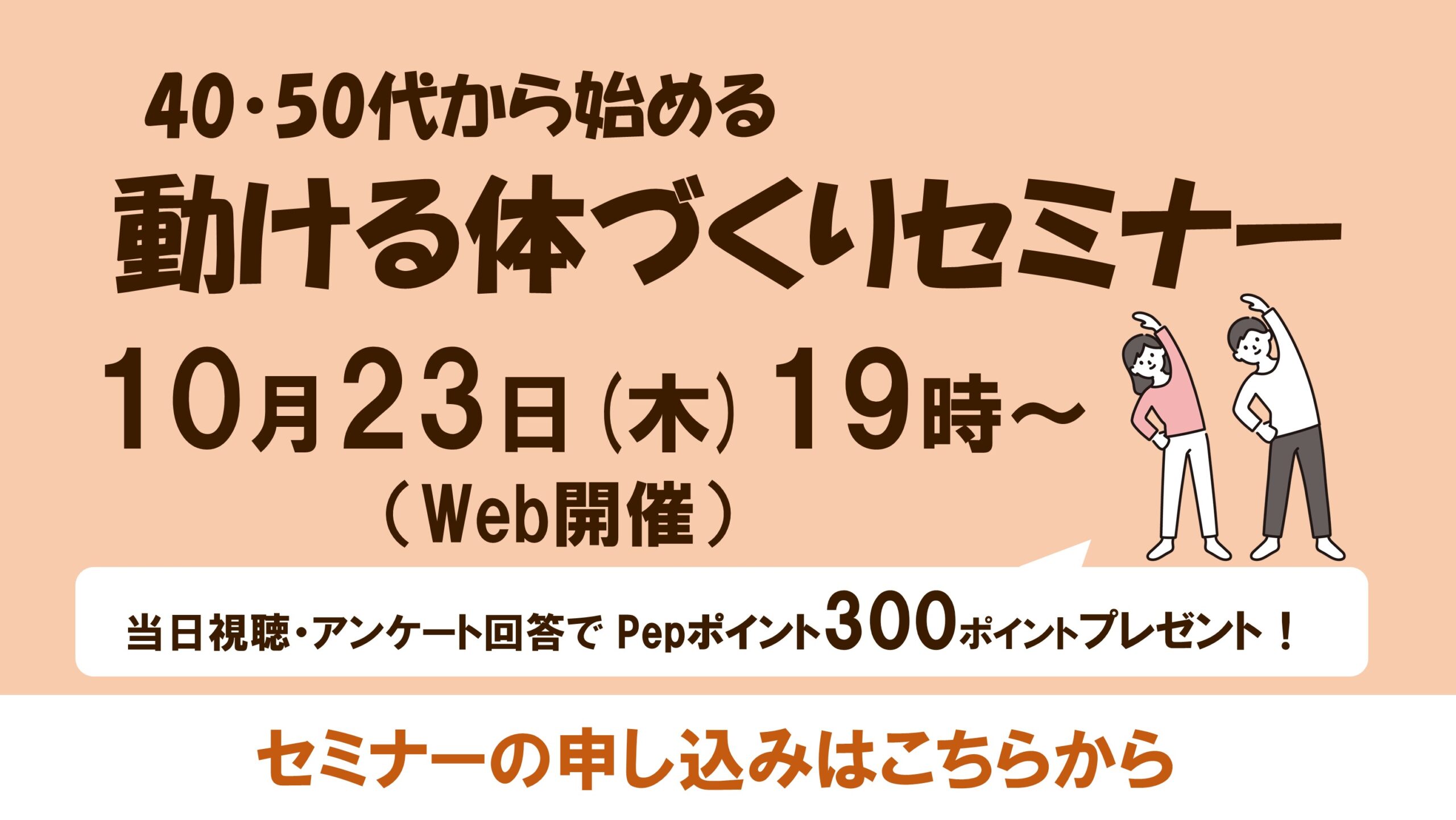 40・50代から始める 動ける体づくりセミナー開催のお知らせ